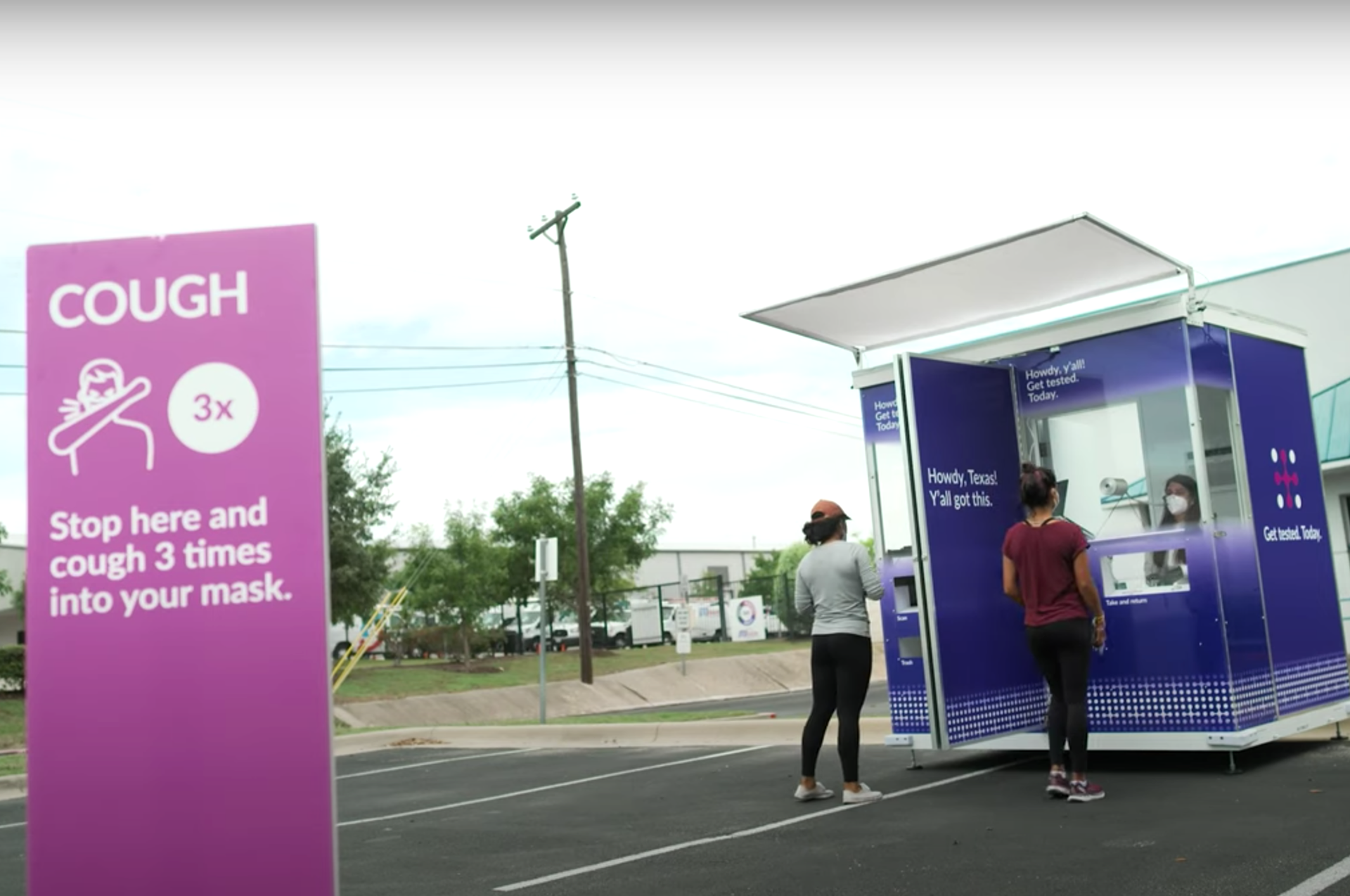 Brand information user experience design for the first series of scaled COVID-19 testing kiosks deployed throughout communities across the US to help fight the COVID-19 pandemic.